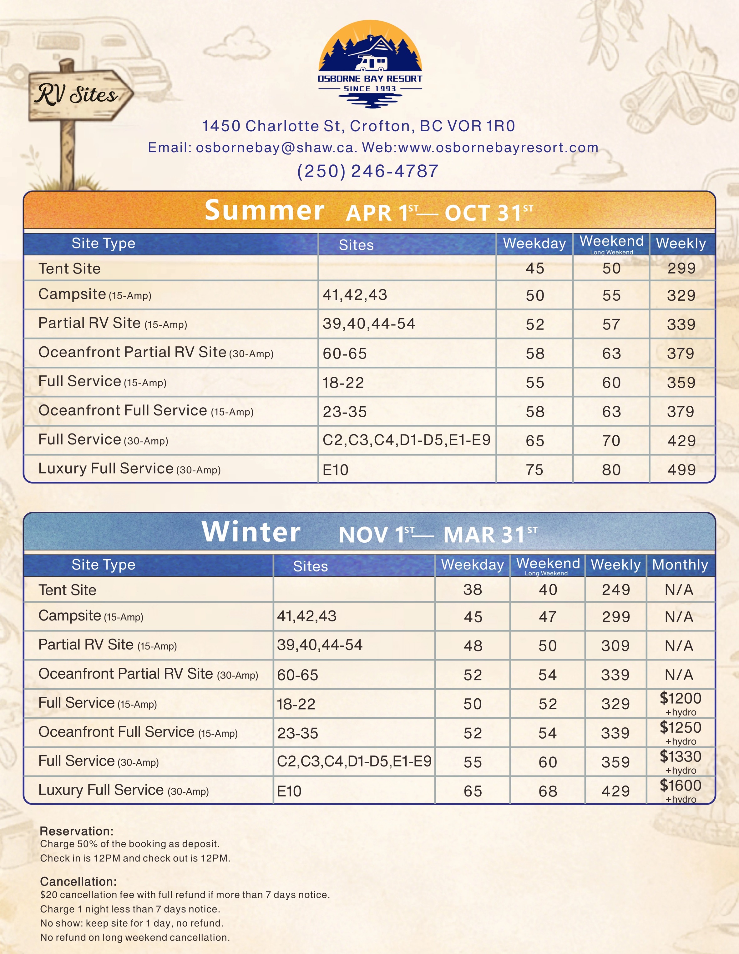 RV SitesEmbrace the beauty of nature with our selection of RV sites, including 60 Full Service Sites and 36 Partial Service Sites.